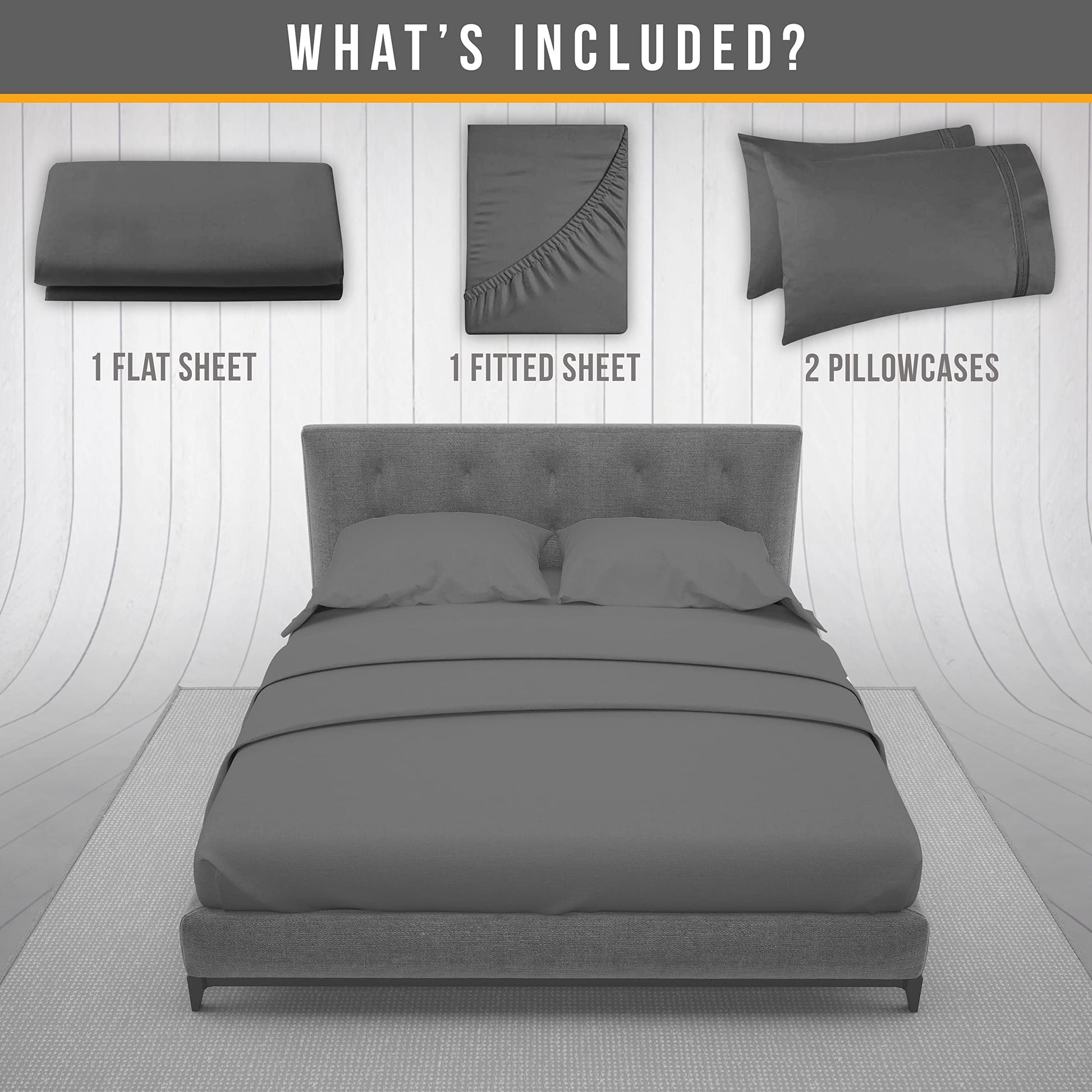 - 4 PIECE LUXURY QUEEN SIZE BED SHEETS SET – 1 flat sheet 102"x90", 1 fitted sheet 80"x60", 2 embroidered pillowcases 20"x30" complete bedding solution grey bed sheets