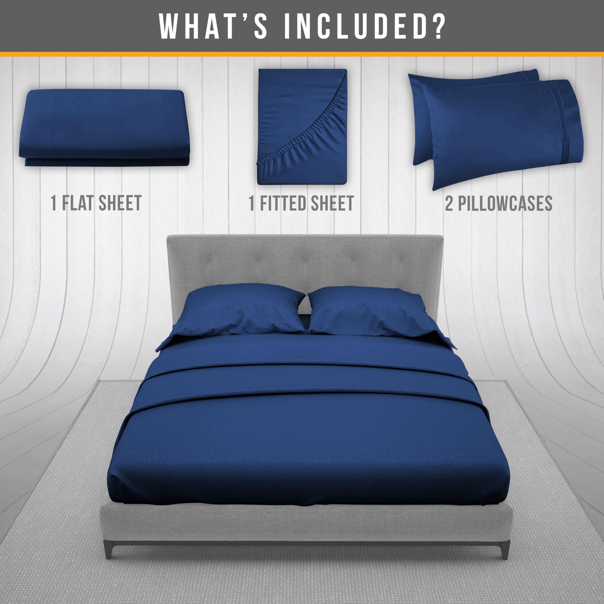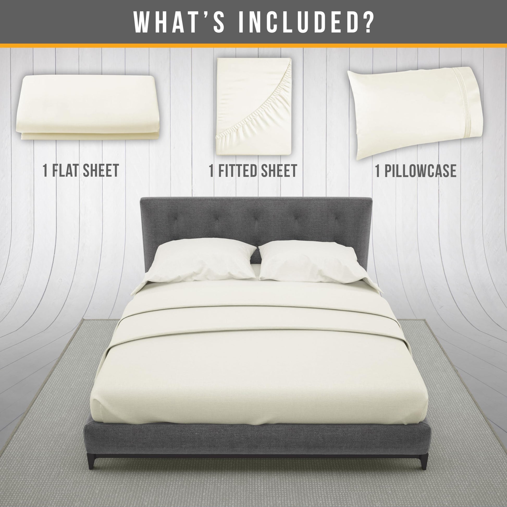 | Components | 1_flat sheet 102"x108", 1_fitted sheet 72"x84", 2_pillowcases 20"x40" | 1_flat sheet 102"x105", 1_fitted sheet 78" x 80", 2_pillowcases 20"x40" | 1_flat sheet 102"x90", 1_fitted sheet 80"x60", 2_pillowcases 20"x30" | 1_flat sheet 81”x96”", 1_fitted sheet 54" x 75", 2_pillowcases 20"x30" | 1_flat sheet 66"x96", 1_fitted sheet 39"x75", 1_pillowcase 20"x30" |